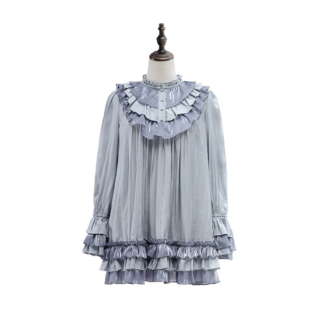 This top features generous ruffles on the chest.