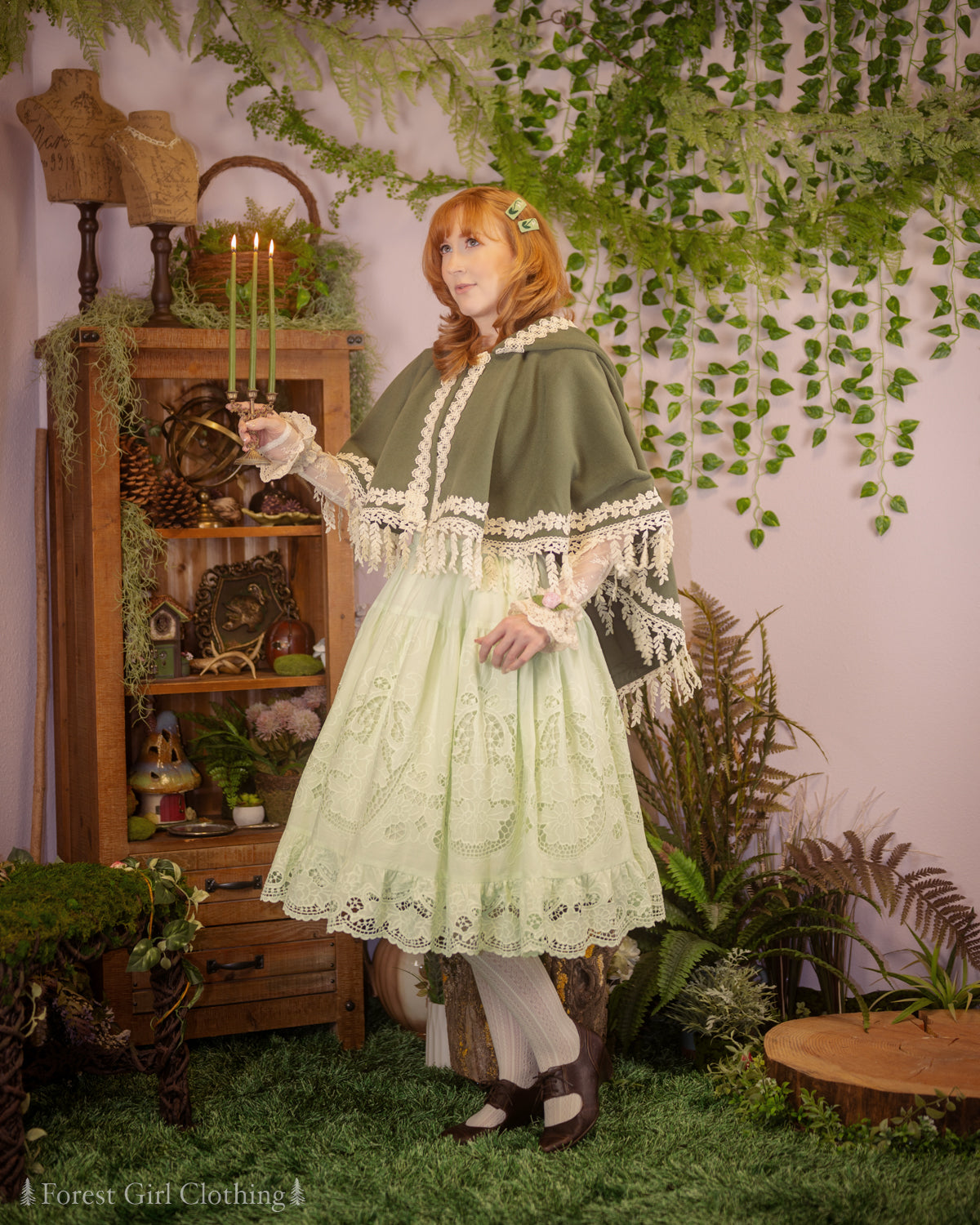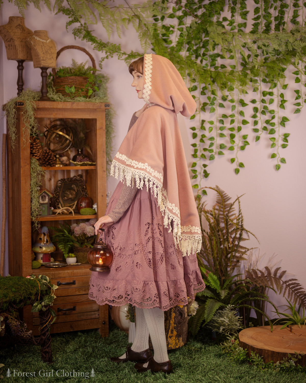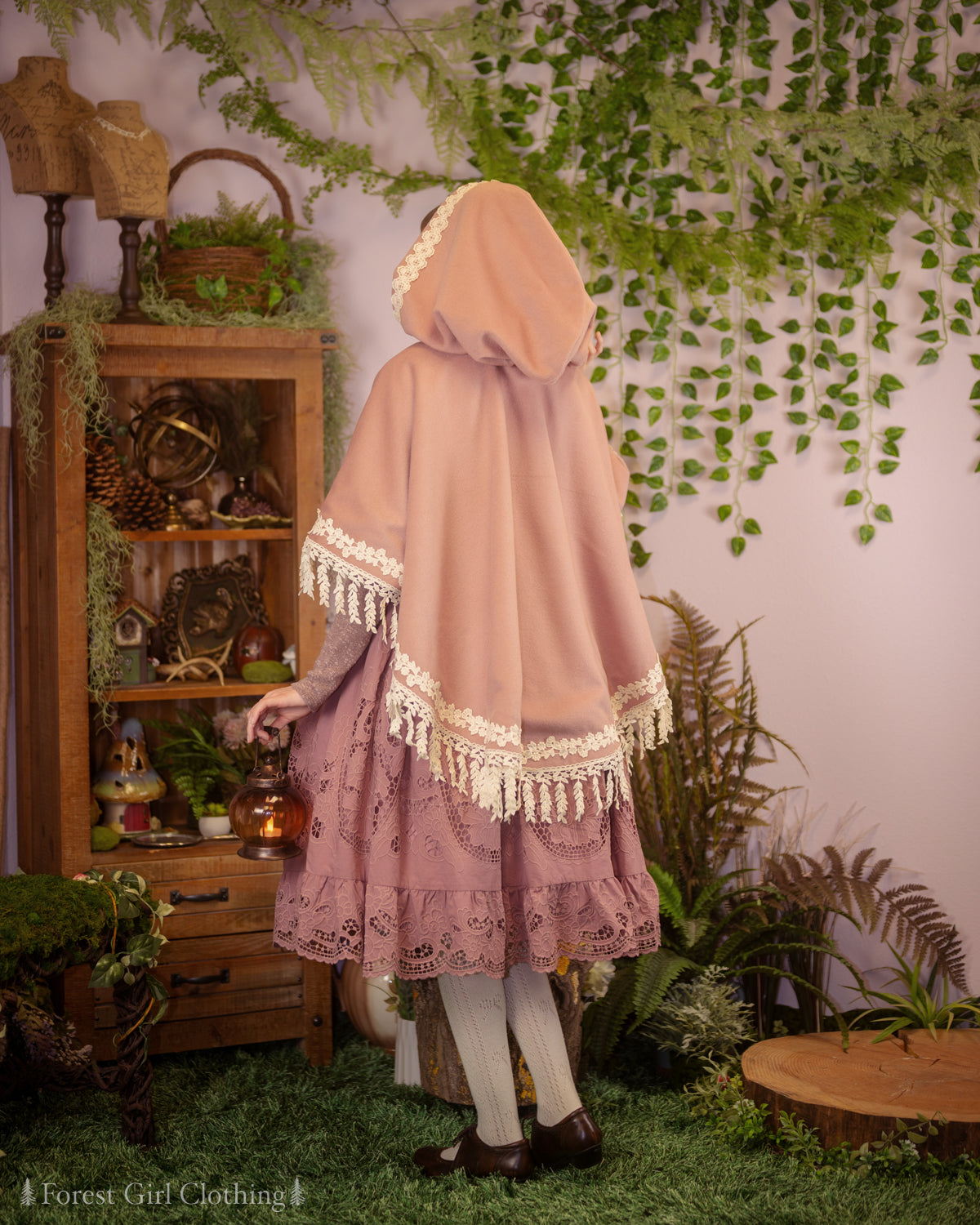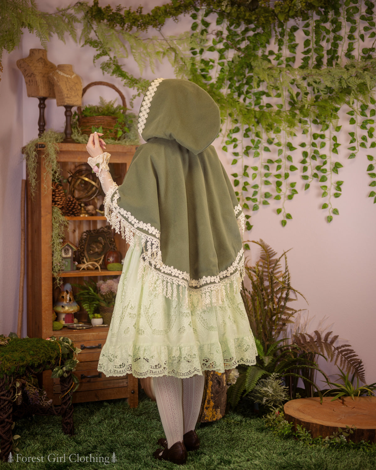 Willow Forest Cape 🌿 named for the draping leaves along its flowing hemline. This cape has a sweeping circular cut, making it a true one-size item that will fit any body size! The hood is oversize with plenty of extra room, and it closes with a brass clasp shaped like a maple leaf.
