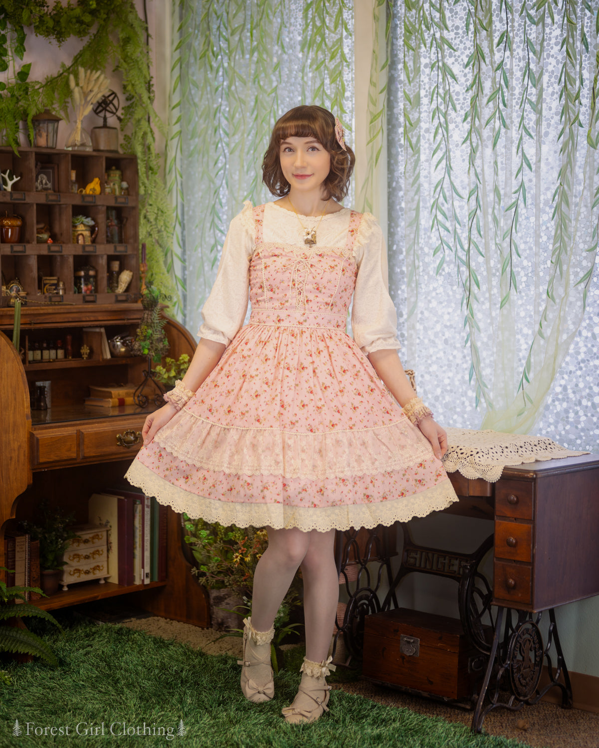 A dress as sweet as strawberries and cream! This summery sundress is made from cotton with an adorable strawberry print, and it is trimmed with three types of strawberry lace!