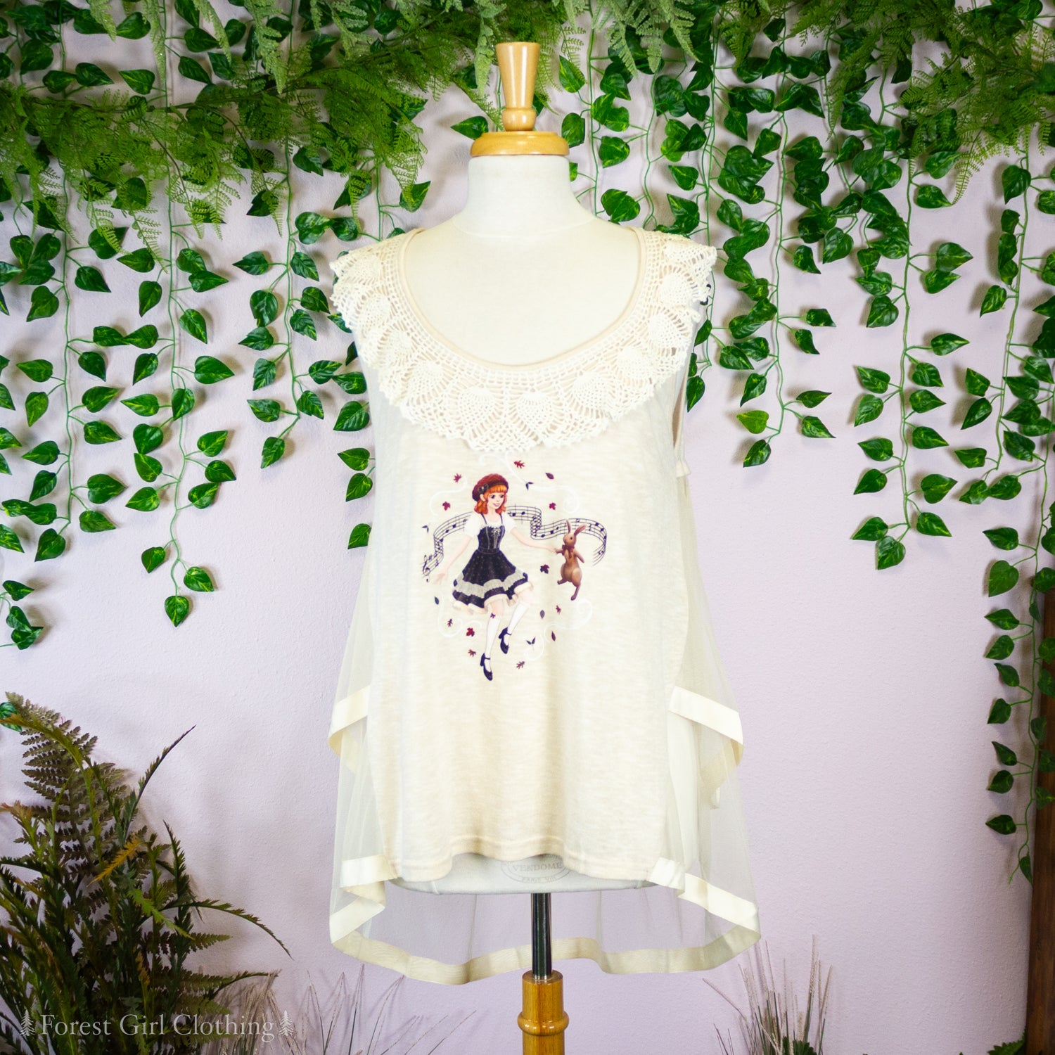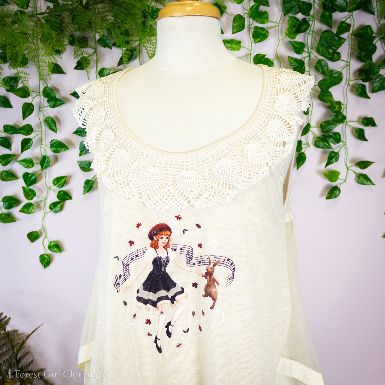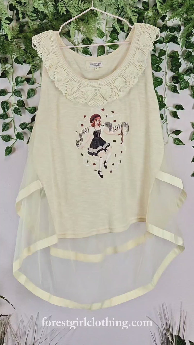 Song of the Autumn Forest Beige Tank Top With Sheer Back