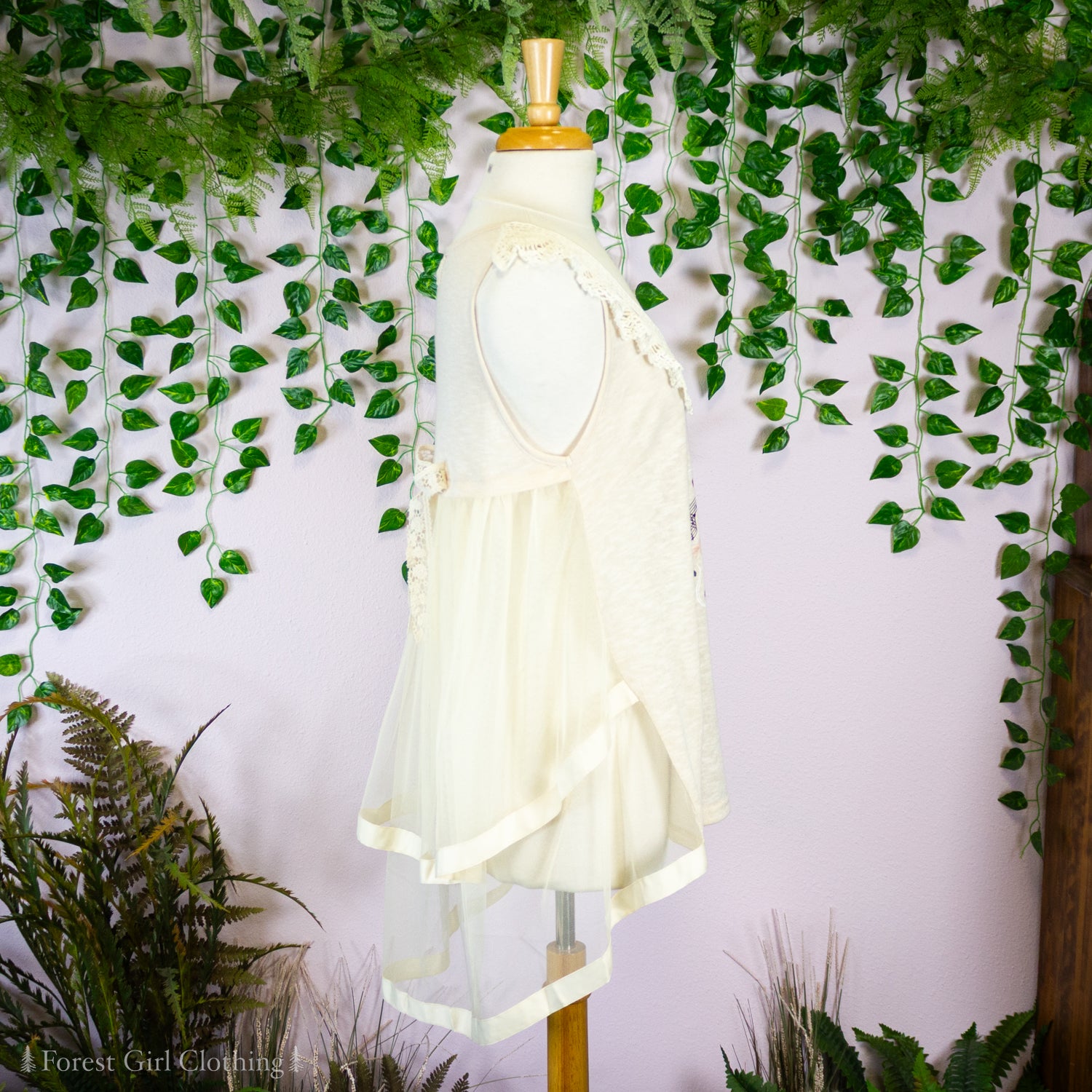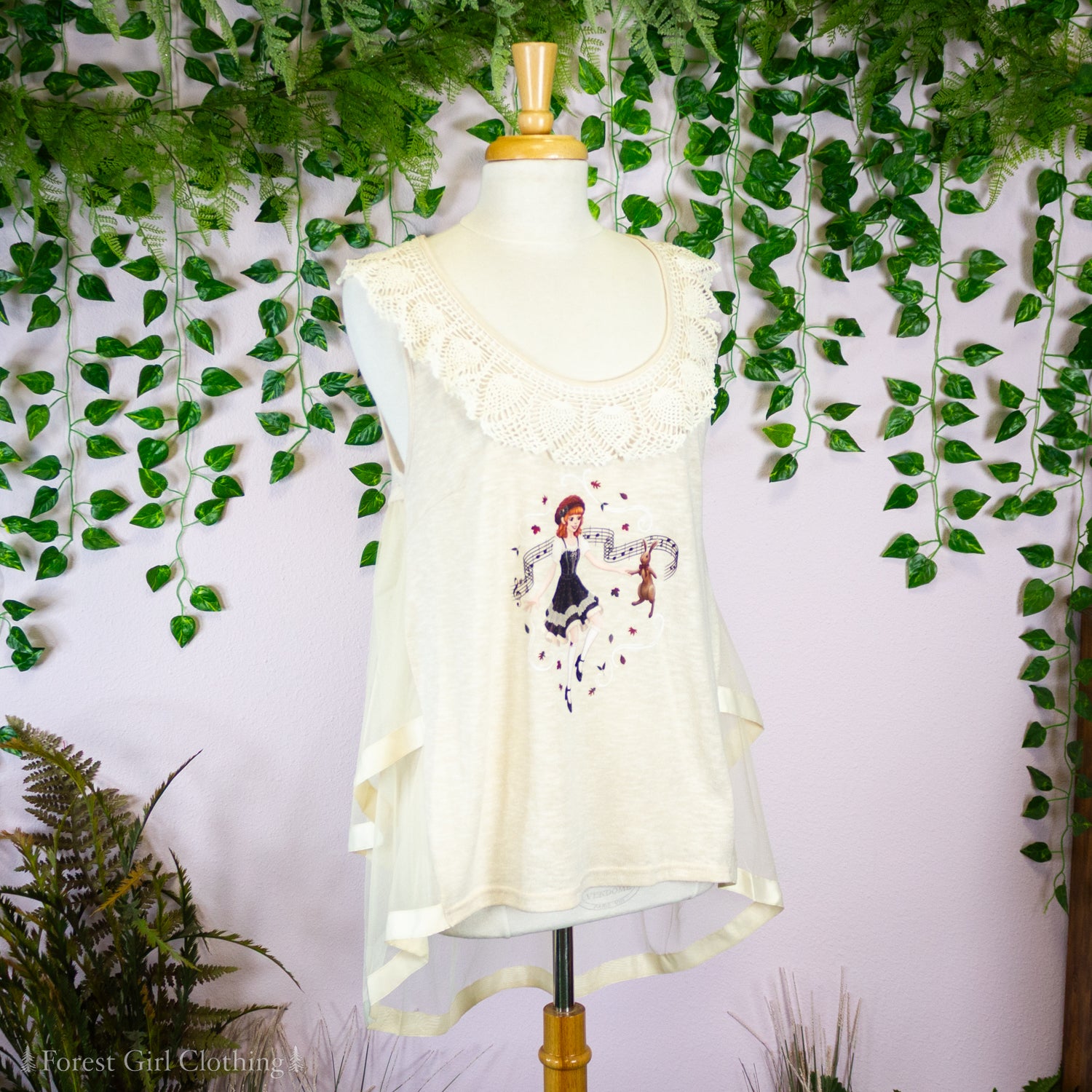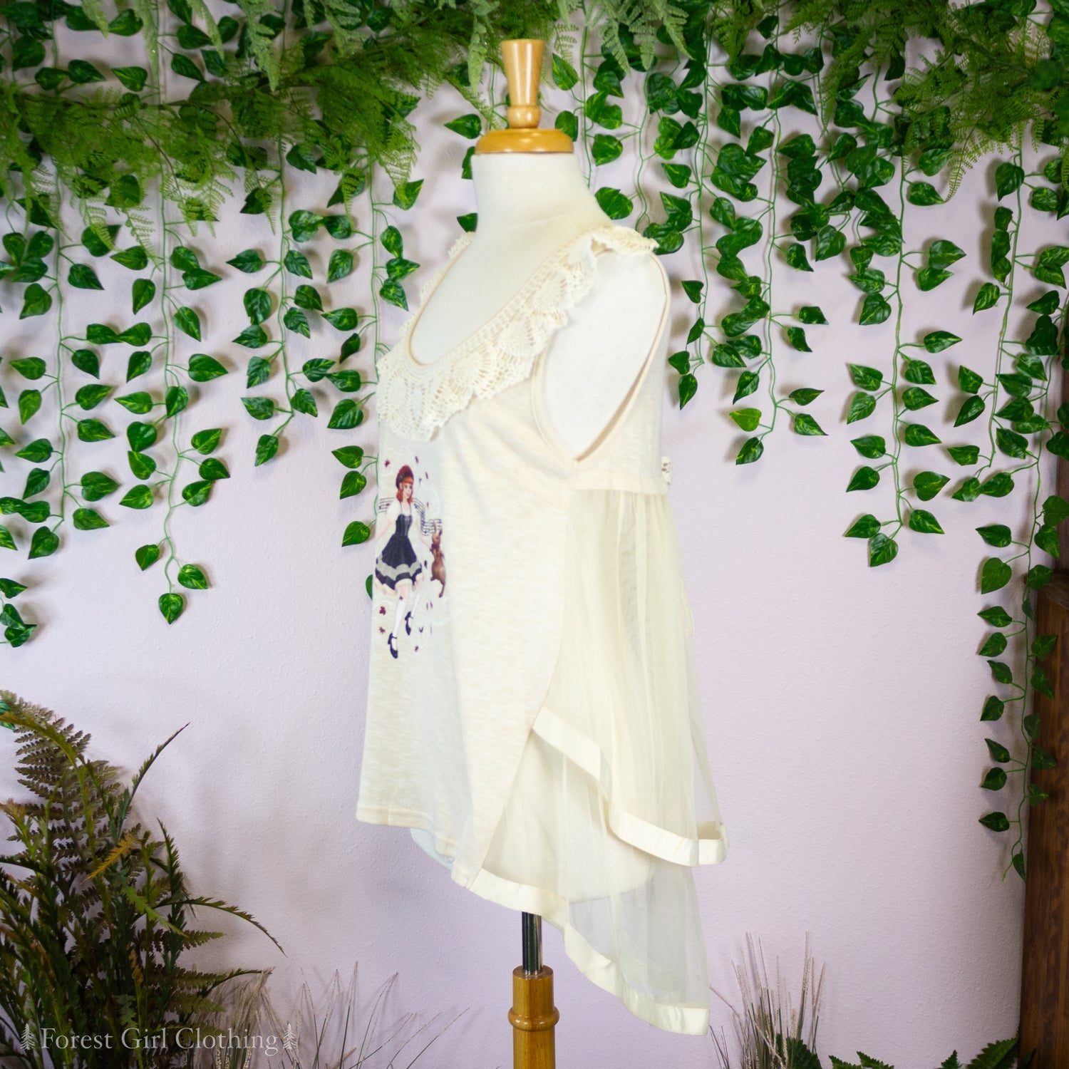Song of the Autumn Forest Beige Tank Top With Sheer Back