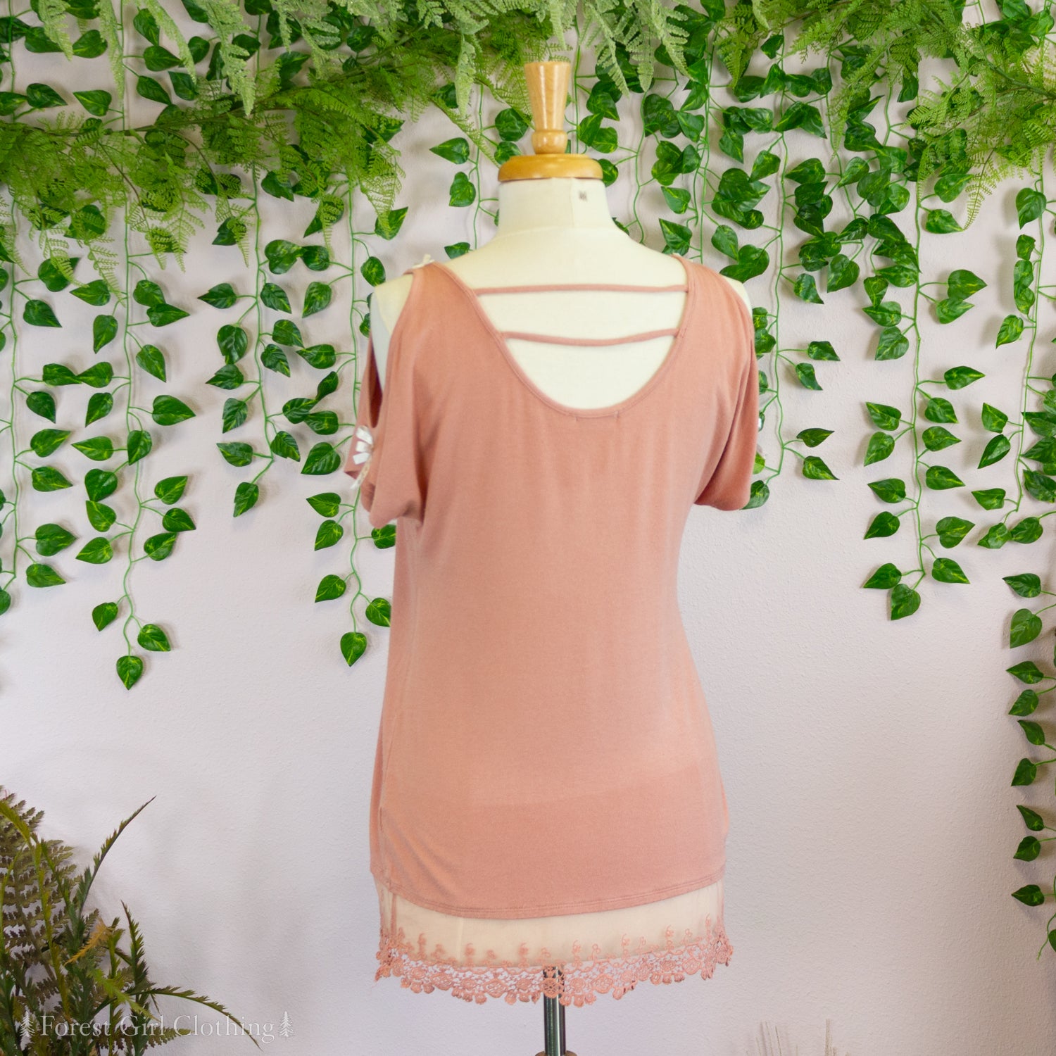 A Girl and Her Rabbit Pink Cold Shoulder T-shirt